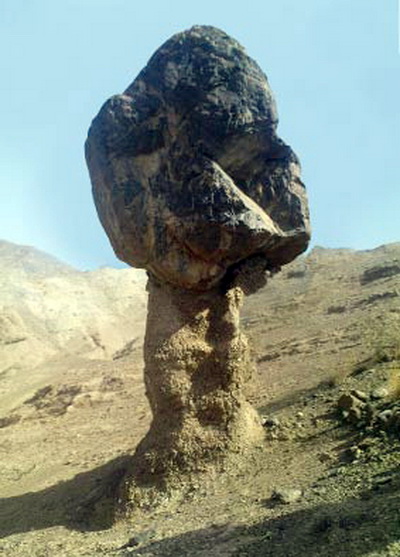 جریانات موقتی آب به همراهی باد در طی سالیان متوالی مواد رسوبی نرم در زیر سنگ مقاوم فوقانی را تخریب نموده و با خود حمل کرده و در نتیجه پدیده زیبا و دیدنی قارچ مانندی را بوجود آورده است.