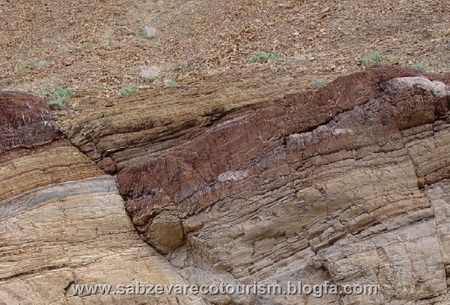 نمونه ای از یک گسل شیب لغز درمسیر گردنه ی سیاه در رشته کومش سبزوار