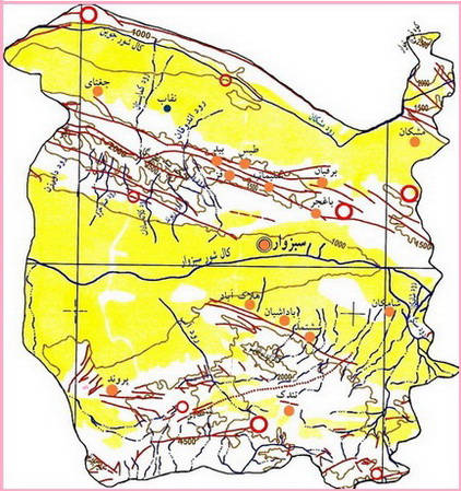 نقشه گسل های مهم و فعال در سبزوار بزرگ